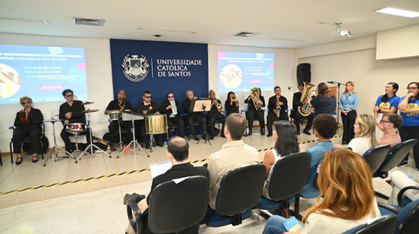 O evento na Unisantos foi aberto pela apresentação da banda musical Lar das Moças Cegas, formada há mais de 20 anos.