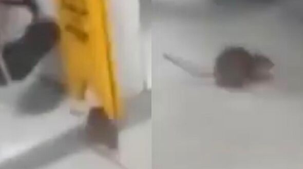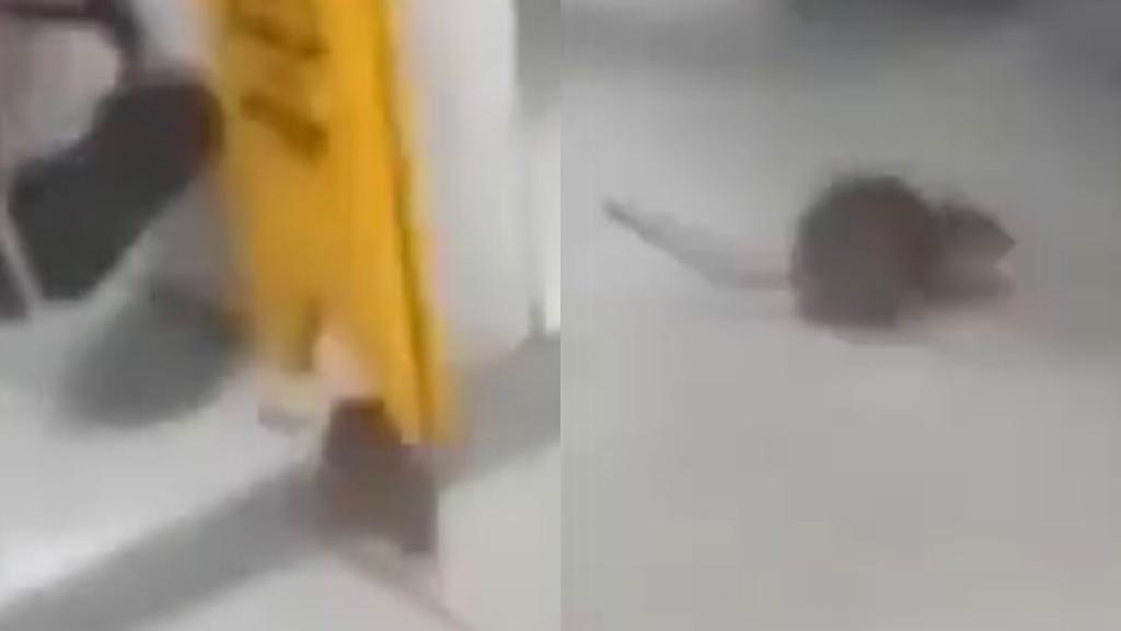 No vídeo que circula pelas redes sociais, a ratazana é flagrada correndo em direção ao elevador - Reprodução