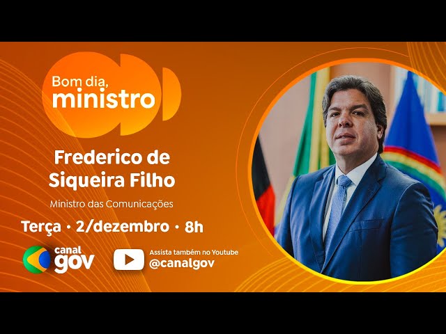 O ministro das Comunicações, Frederico de Siqueira Filho, é o convidado do Bom Dia, Ministro desta terça-feira, 2 de dezembro. Durante o bate-papo a partir das 8h com profissionais de rádios e portais de notícias de várias regiões do país, ele vai detalhar os avanços da conectividade no Brasil, incluindo a expansão do 5G e o programa Escolas Conectadas, além de tratar da nova fase de autonomia da Telebras.