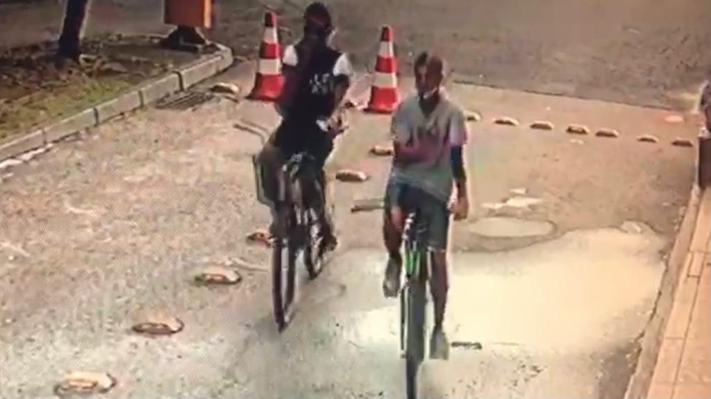 Os dois suspeitos chegaram de bicicleta pela entrada do estacionamento da lanchonete - Reprodução