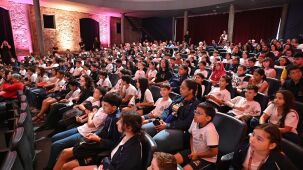 Com mais de 150 alunos do Núcleo Ponta da Praia, de Jornada Ampliada, e da UME Florestan Fernandes (Embaré), a Tarrafinha Literária foi marcada por uma tarde de conhecimento e troca de experiências com um autor indígena, o músico, compositor, cineasta e e