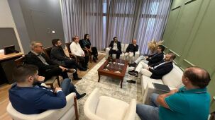 Reunião aconteceu na sede da Autoridade Portuária de Santos com parlamentar, que cobrou empregos regionais na obra