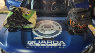 Dois homens foram presos pela Rondas Ostensivas Municipais (ROMU Oswaldo Justo), da Guarda Civil Municipal (GCM) de Santos, na madrugada de terça-feira (30), no Centro Histórico, após furtarem cabos de cobre do bonde turístico
