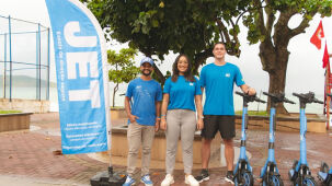 Modernos e seguros, os patinetes elétricos são rastreados por GPS e têm um limite de velocidade de até 20 km/h