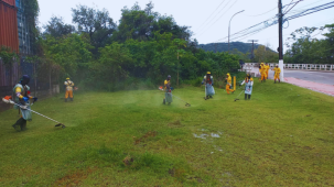 Serviços acontecem todos os dias para garantir a limpeza urbana; roçada abrangeu toda a extensão da Avenida Santos Dumont no Distrito de Vicente de Carvalho