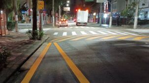 A Rua Galeão Carvalhal, no Gonzaga, está recebendo revitalização em toda a sua sinalização de solo.