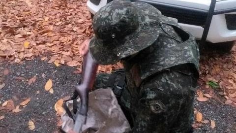 Um indivíduo que atravessava o Rio Ribeira de Iguape utilizando a balsa, portando um saco de linhagem branco nas costas, percebeu ao desembarcar na margem lado oposto do bairro, a presença policial no local. Ele apresentou certo nervosismo, o que chamou a atenção da equipe, que de imediato realizaram a abordagem ao indivíduo, identificado como Sr. D.S que após revista, foi localizado no interior do saco de linhagem uma espingarda calibre 36, marca CBC, 29 cartuchos de calibre 36 e um cinturão de couro.