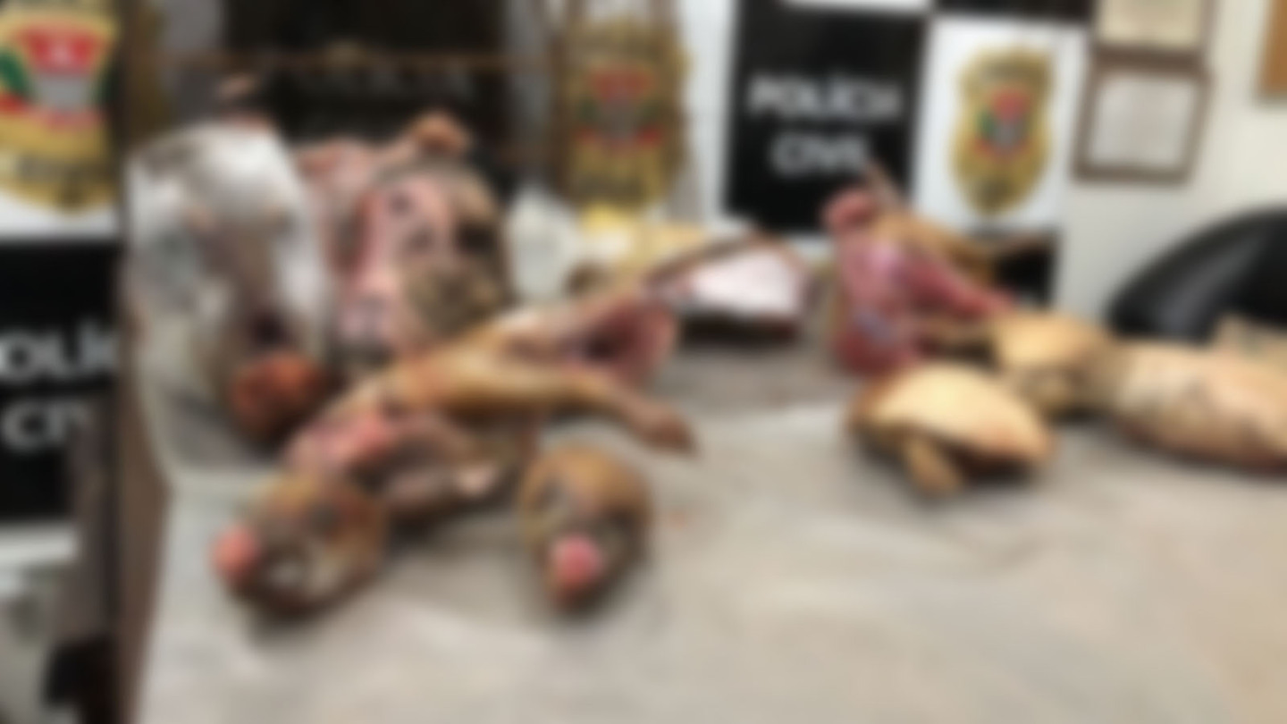 Ao ingressar na casa, situada na área rural de Eldorado, os policiais civis foram recebidos por uma mulher (62 anos), a qual alegou que seu companheiro que realizava a caça desses animais. Ao vistoriar o imóvel os investigadores localizaram congelados no freezer 2 porcos do mato, 2 quatis e 3 tatus. Além desses animais, os policiais civis apreenderam dentro de uma gaiola um pássaro da espécie Bico de Pimenta, muito cobiçado por criadores de aves.