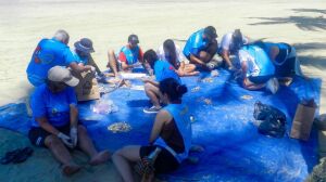 Seguindo na fiscalização, foram encontradas duas malas, uma azul e uma vermelha, com material análogo a maconha. Na primeira, havia 7,85 Kg do produto; na segunda, havia 9,1 Kg, totalizando, portanto, 16,95 Kg.