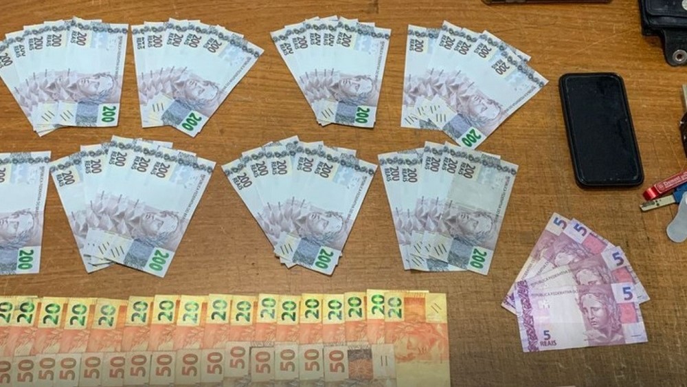 R$ 2,3 mil em notas verdadeiras também foram localizados com os autores - Foto: divulgação/Polícia Militar