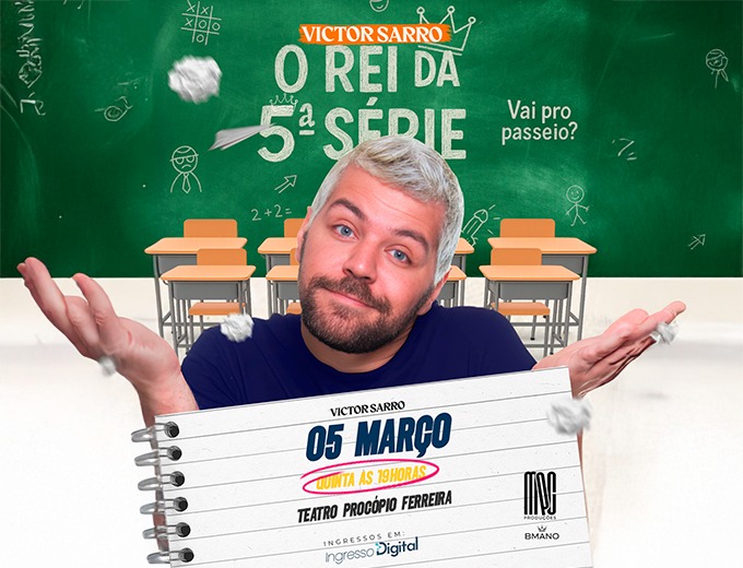 Nesta quinta-feira (5), às 19 horas, o Teatro Procópio Ferreira (Avenida Dom Pedro I, 350 – Jardim Tejereba) recebe uma noite de humor afiado e interações hilárias com o comediante Victor Sarro, um dos nomes mais populares do stand-up comedy brasileiro, com quase três milhões de seguidores. Ele traz à cidade seu novo show, "Rei da Quinta Série".