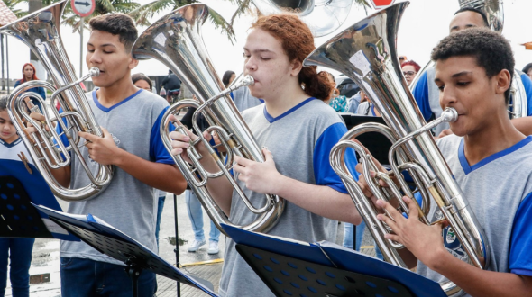 . Os interessados podem se cadastrar de forma online ou presencial, de acordo com a disponibilidade de vagas. Os participantes terão à disposição diferentes instrumentos, incluindo opções de percussão e metais.