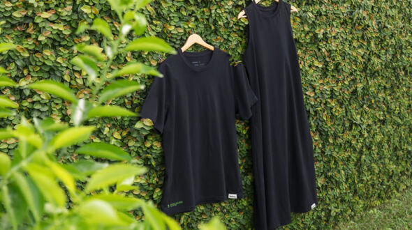 Produzida com a única malha no Brasil que captura o CO2 do ambiente e o elimina na lavagem, a nova coleção cápsula em edição limitada traz, além da camiseta, um vestido exclusivo