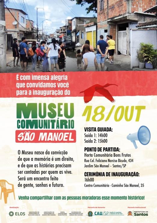 O Museu Comunitário de São Manoel, primeiro de periferia da Baixada Santista, será inaugurado neste sábado (18). A atração será itinerante, ou seja, uma exposição que se desloca para diferentes locais, levando acervos e atividades educativas para onde o público estiver.