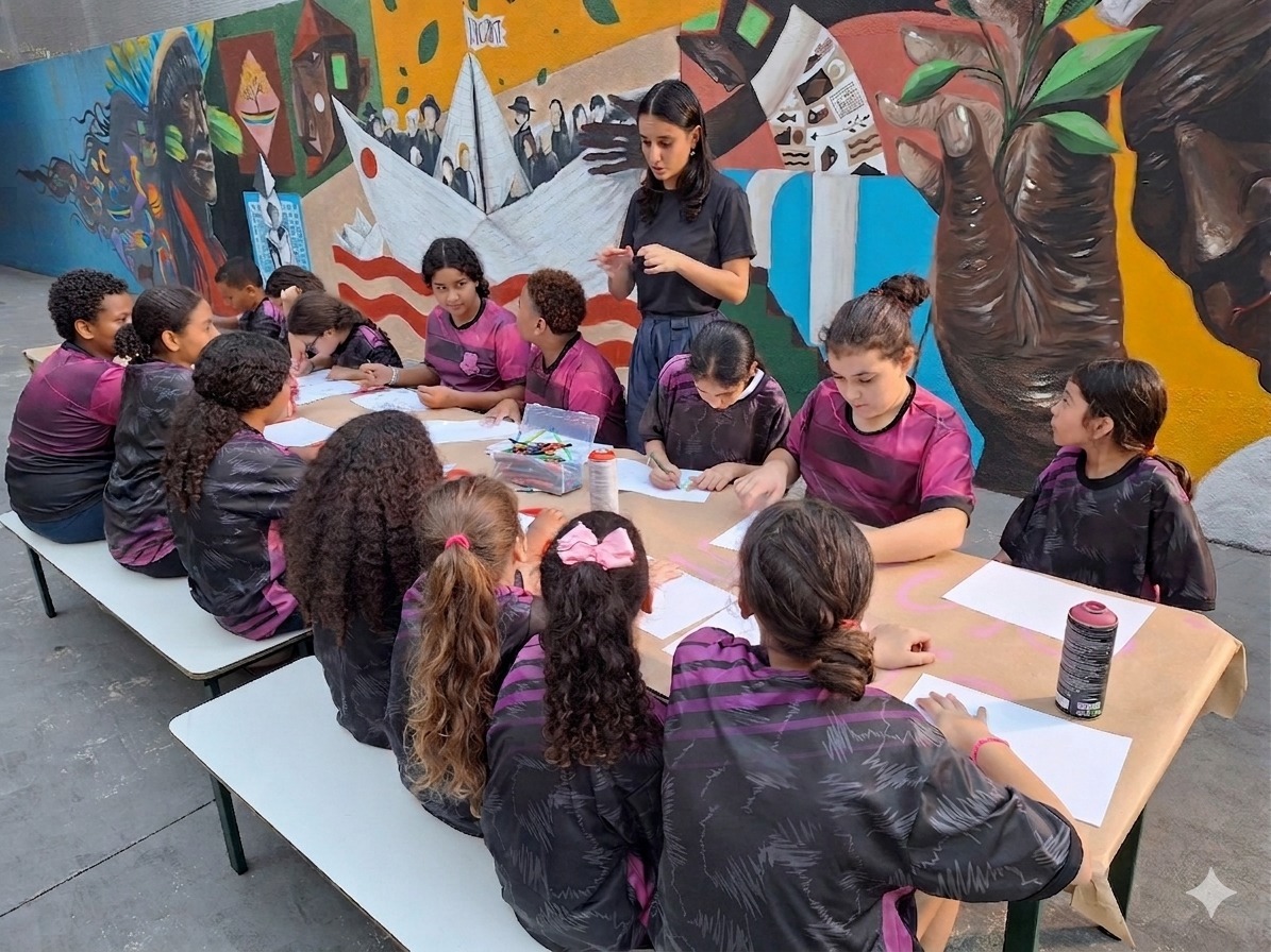 Realizado dentro da UME Colégio Santista, o projeto se destaca por ser conduzido integralmente por mulheres, fortalecendo o protagonismo feminino em sua gestão e execução. Um de seus principais focos é o empoderamento de meninas e adolescentes, promovendo reflexões e ações no combate à violência contra a mulher e incentivando a construção de autonomia e autoestima.