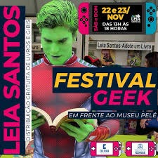 Para encerrar o mês, o projeto Leia Santos marca presença na 7ª edição do Festival Geek. Neste sábado e domingo o projeto levará edições temáticas ao Festival, das 13h às 18h, levando literatura e quadrinhos para os fãs de cultura pop.